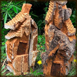Al Wood Mayne Island, BC Intricately whittled small wooden castles for the wall or shelf sourced specifically from North British Columbian cottonwood |