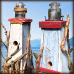 Lighthouse Pottery & Gifts Mayne Island, BC Unique and whimsical bird houses compiled from driftwood, up-cycled materials and natural embellishments, in traditional and lighthouse formats |